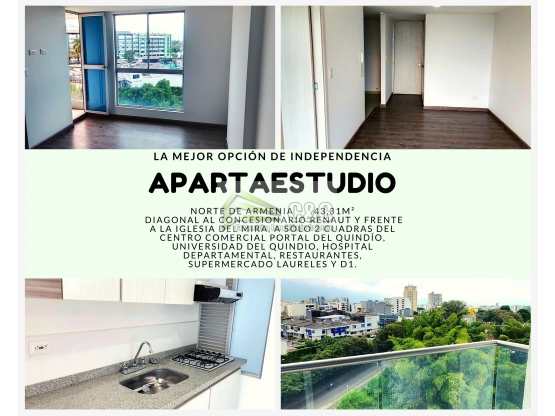 C&C Corporativo Inmobiliario Cafetero ofrece en venta Apartaestudio ubicado en prestigioso sector de la ciudad. Ubicado en el Norte de Armenia, diagonal al concesionario Renaut y frente a la Iglesia del Mira, a solo 2 cuadras del Centro Comercial portal del Quindío, Universidad del Quindio, Hospital departamental, restaurantes, Supermercado Laureles y D1.