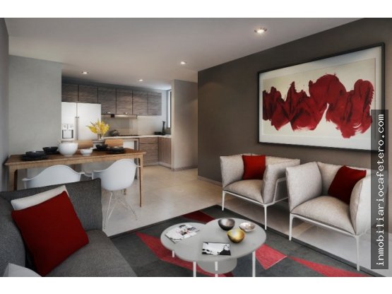 Se vende apartamento  en sector urbanístico de alta valorización al norte de la ciudad de Armenia, Quindío. El apartamento cuenta con 62 mtrs2 área construida. Con vista panorámica hacia la ciudad y a la cordillera central. Rodeado de naturaleza, amplios espacios, Iluminación y ventilación natural. El conjunto cuenta con: amplias áreas de Reserva Natural (21.400 mtrs2), Terraza mirador hacia la cordillera y al rio Quindío, Salón social o espacio para gimnasio, cancha múltiple, piscina para niños y adultos, juegos Infantiles, zona de BBQ, espacio para mascotas, senderos peatonales donde se observará la fauna y flora de la zona, vivero con especies de la región para adopción de árboles, portería y vigilancia privada 24/7.