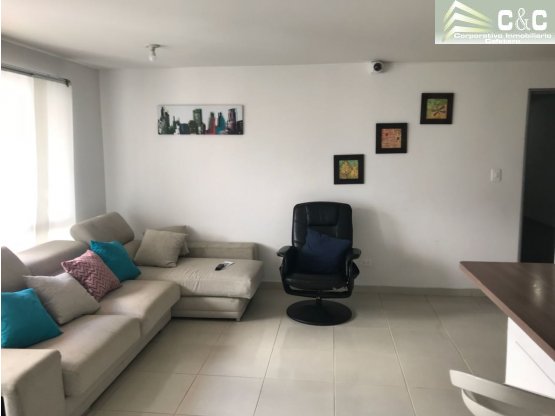 El apartamento cuenta con estudio, sala comerdor, barra tipo americana, cocina integral, zona de ropas y parqueadero cubierto.