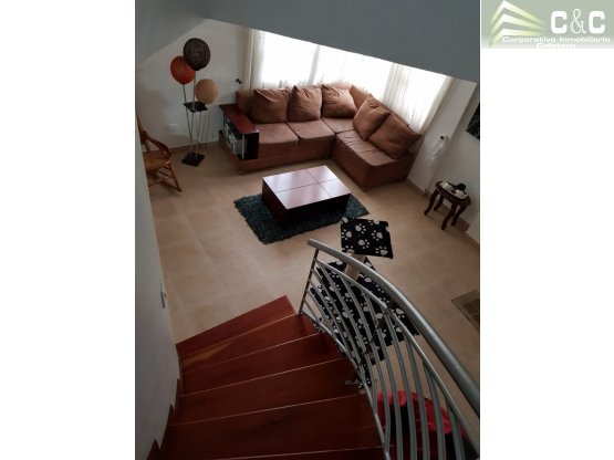 C&C Corporativo Inmobiliario Cafetero, ofrece en venta casa esquinera campestre, cerca a Calarca, Quindio, de estructura aporticada, la propiedad es de dos pisos, cuenta con area de 150 mtrs2 construida, cuenta con una habitacion en el primer piso, lo mismo que el estudio amplio e ilumindao, habitaciones amplias, la alcoba principal es de 21 metros2 la cual tiene un balcon con una vista especatacular a la montaña, cocina integral, zona de lavanderia y un espacio que puede ser utilizado para despensa u otro uso, escalera en madera algarrobo rojo, parqueadero privado para un vehiculo, el conjunto con excelente tradicion y reconocimiento, cuenta con areas sociales para la integracion de sus residentes, porteria y vigilancia 24/7.