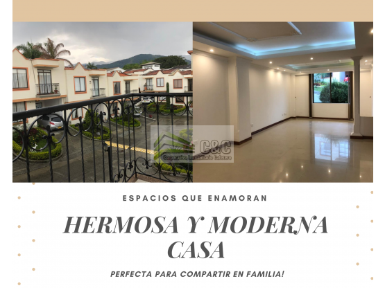 Esta hermosa casa consta de 4 HAB Una de ella es pequeña puede ser utilizada para ESTUDIO en el primer piso, ttoda.la carpinteria en madera cuenta con una Cocina con diseño y espacios amplios, zona de lavanderia amplia y patio corredizo, sala comedor con excelentes espacios y acabados.